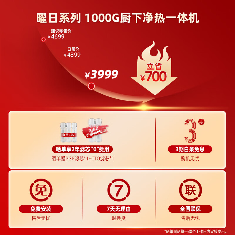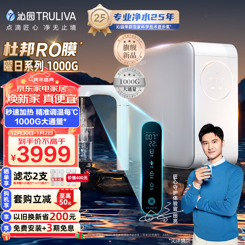 沁园(TRULIVA)曜日加热净水器1000G 5年RO反渗透 智能触控屏精准调温 家用厨下即热直饮一体机UR-S51048H价格:4299.00元!
