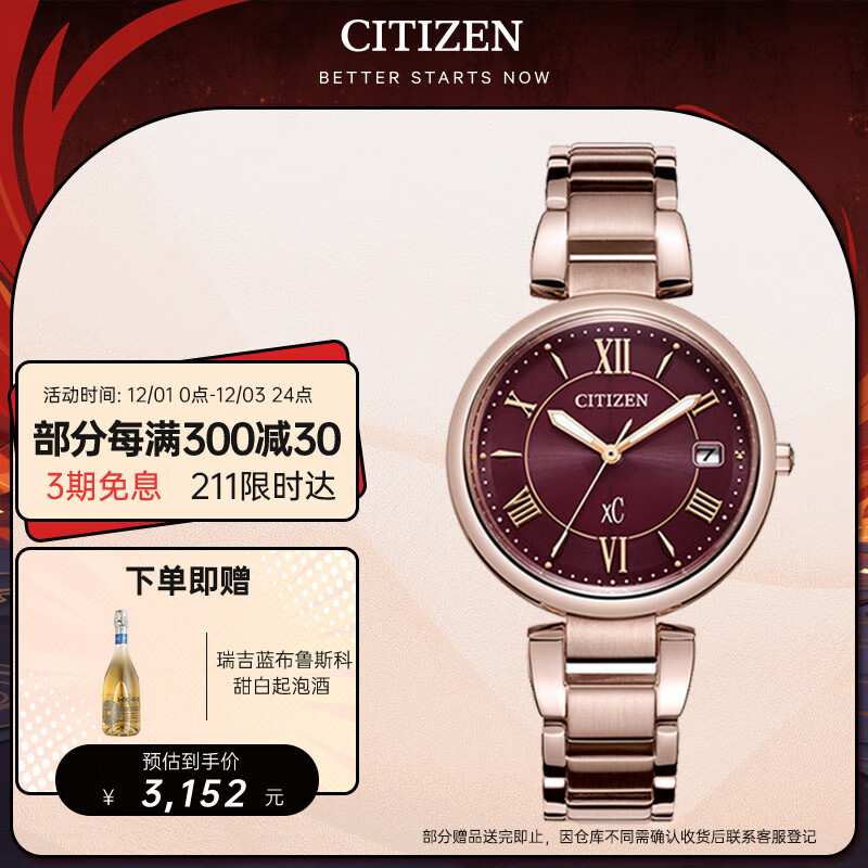 西铁城(CITIZEN)手表女日韩表xC系列光动能日显钢带时尚送礼物EO1194-53W价格:3492.00元!