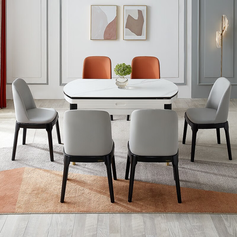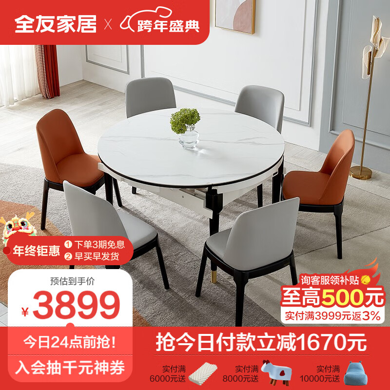 全友家居 北欧轻奢岩板餐桌椅可圆可方伸缩实木框架饭桌DW1029价格:5568.71元!