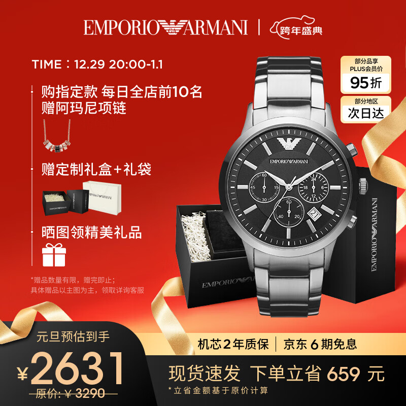 安普里奥·阿玛尼(Emporio Armani)手表男 多功能三眼计时钢带石英时尚男表 送男友生日礼物AR2434价格:3231.00元!