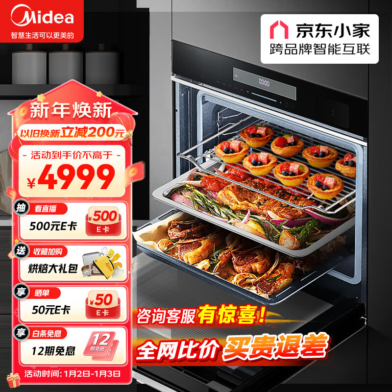 美的(Midea)Q7蒸烤箱一体机72L嵌入式蒸箱烤箱APP智能操控搪瓷内胆BS7051W价格:4699.00元!