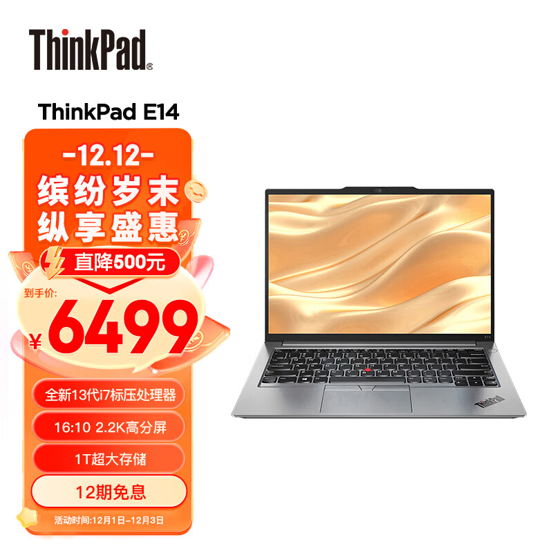 ThinkPad E14 2023 酷睿i7 联想14英寸轻薄便携笔记本电脑(13代i7-13700H 16G 1T 2.2K IR摄像头)商务办公学生本价格:6499.00元!