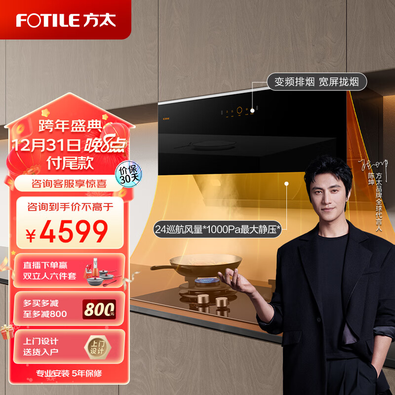 方太抽吸油烟机灶具套装侧吸变频烟灶套装24大风量智能巡航挥手5.0kW猛火双灶JCD16T+THF1价格:4599.00元!