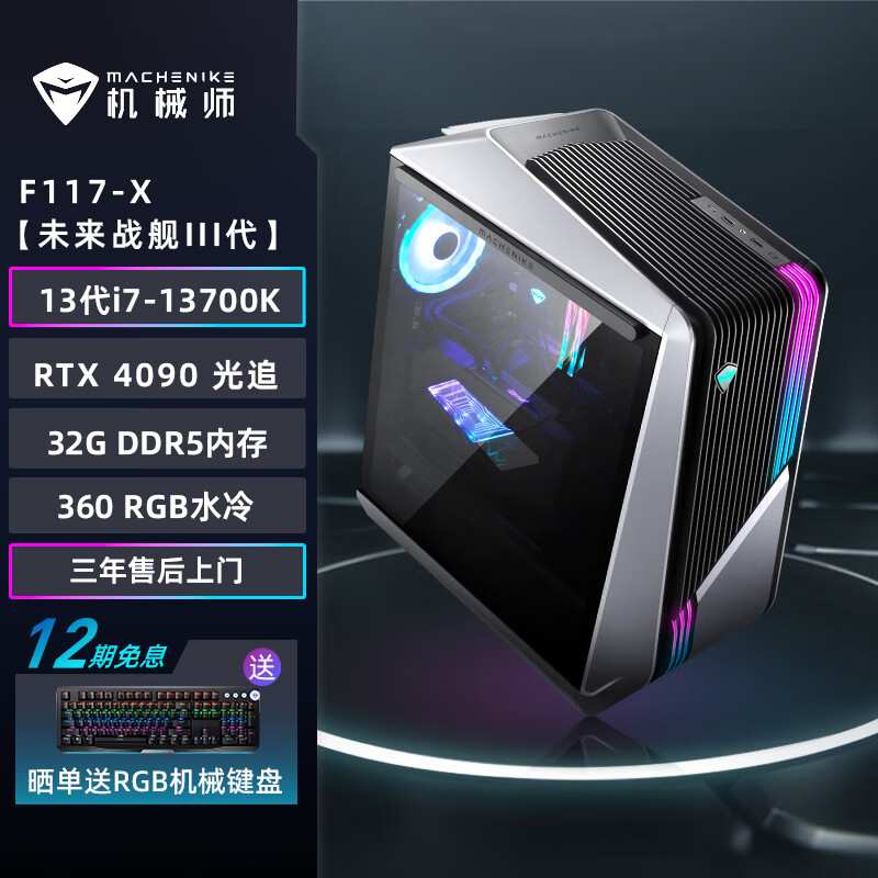 机械师(MACHENIKE)未来战舰 游戏台式机电竞电脑主机(13代i7-13700K 32G DDR5 1TSSD+2T RTX4090)360水冷价格:24999.00元!