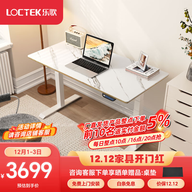 乐歌电动升降桌电脑桌站立办公学习桌写字桌 E5-N/1.4m岩板套装价格:3699.00元!