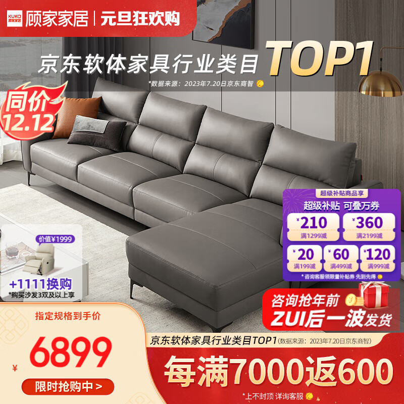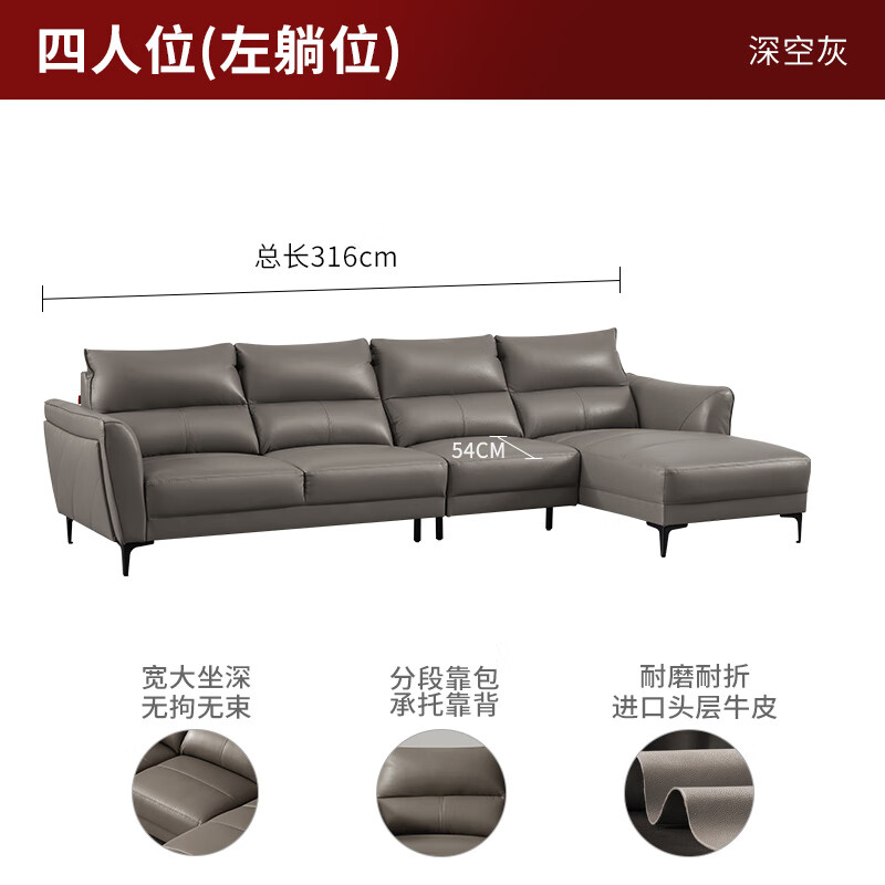 顾家家居皮沙发现代轻奢沙发客厅沙发1107深空灰四人位躺左价格:6899.00元!