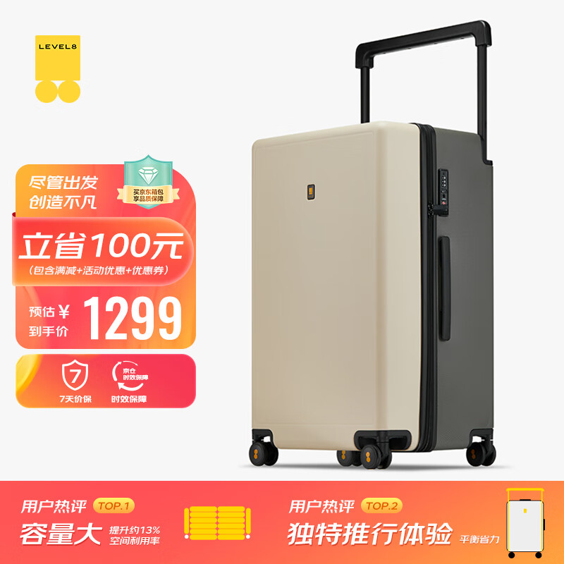 地平线8号(LEVEL8)行李箱男女密码拉杆箱 大旅行家大容量26英寸宽拉杆PC箱 摩卡撞色价格:1399.00元!