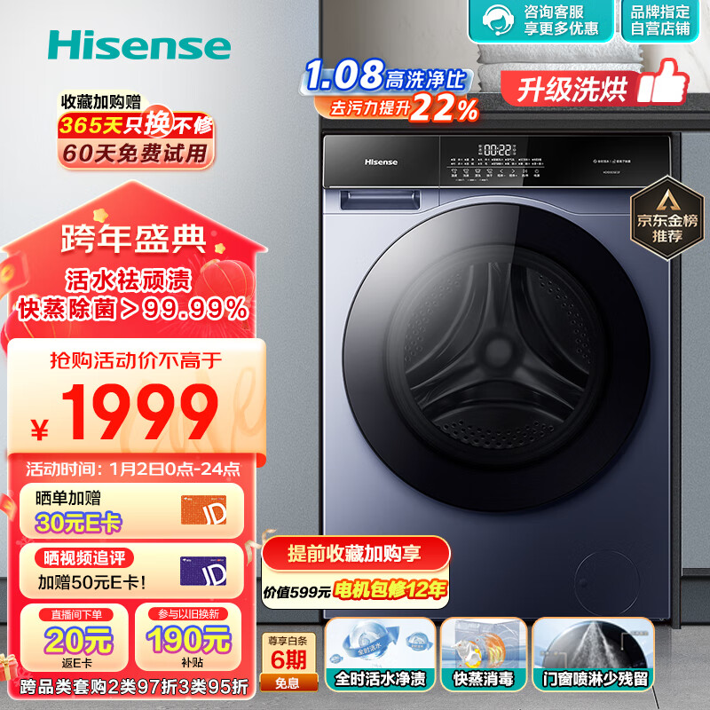 海信(Hisense)滚筒洗衣机全自动 10公斤洗烘一体大容量家用超薄 活水洗科技 快蒸消毒带烘干HD100DSE12F以旧换新价格:1999.00元!