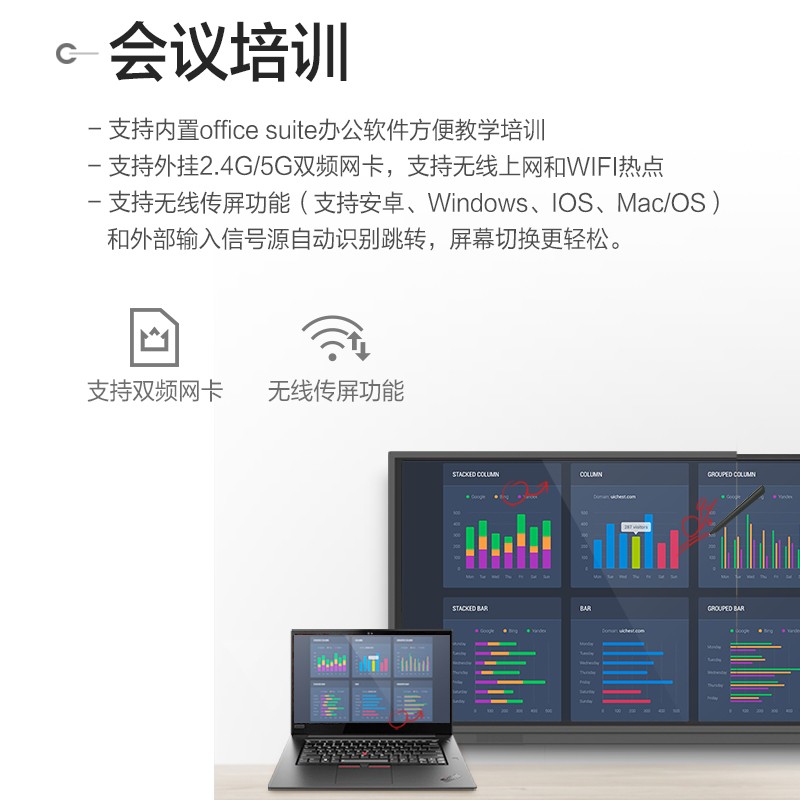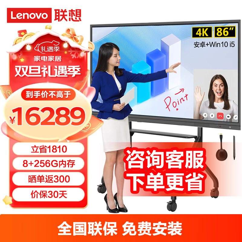联想thinkplus会议平板LX-X86P 86英寸电子白板视频会议培训电视一体机商用+传屏+支架+Win10电脑模块价格:16289.00元!
