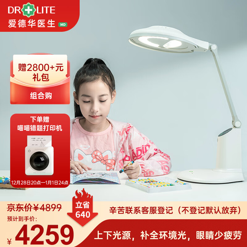 爱德华医生护眼灯巴尔德尔之光医安级NIR红光智能调光学生学习可夹台灯价格:4899.00元!