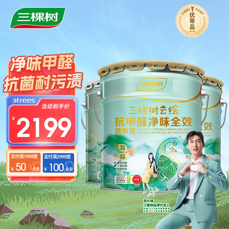 三棵树漆抗甲醛抗菌防霉无添加墙面漆套装51L(厂送定制品 可调色)价格:2748.75元!