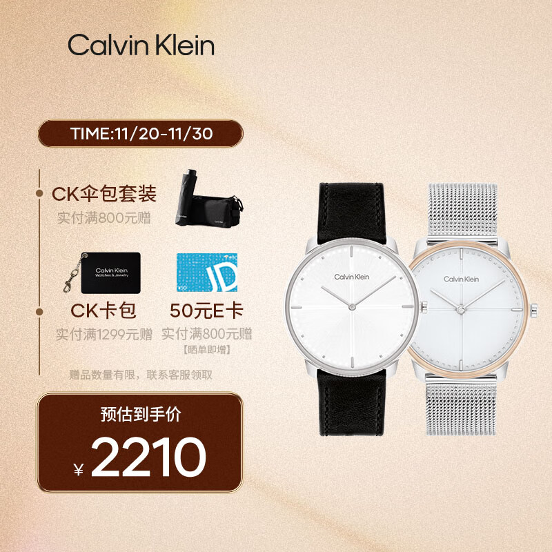 凯文克莱(Calvin Klein)CK简约款时尚石英情侣表25200156+25200157【情人节礼物】价格:2353.00元!
