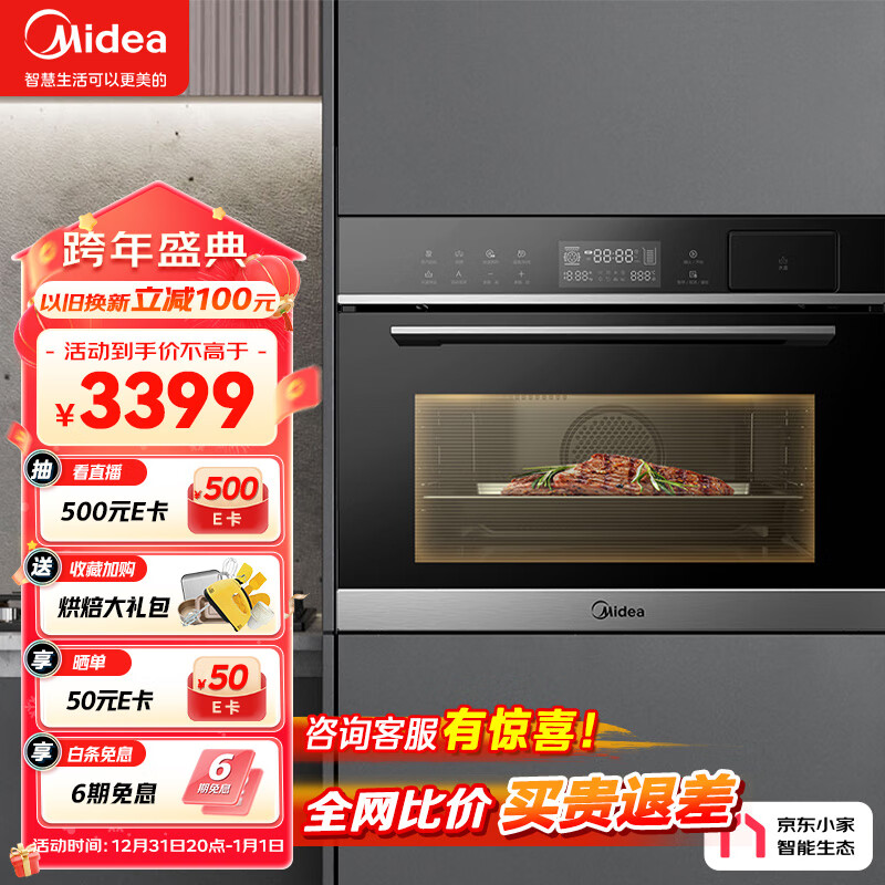 美的(Midea)嵌入式蒸烤箱一体机YA5048W(A50) 家用50L大容量多功能蒸箱烤箱二合一 搪瓷内胆 京东小家APP操控价格:3599.00元!