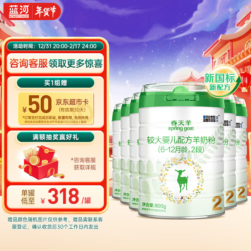 蓝河(blue river)新国标春天羊2段800g*6罐 较大婴儿配方羊奶粉(6-12月)新西兰进口价格:2388.00元!