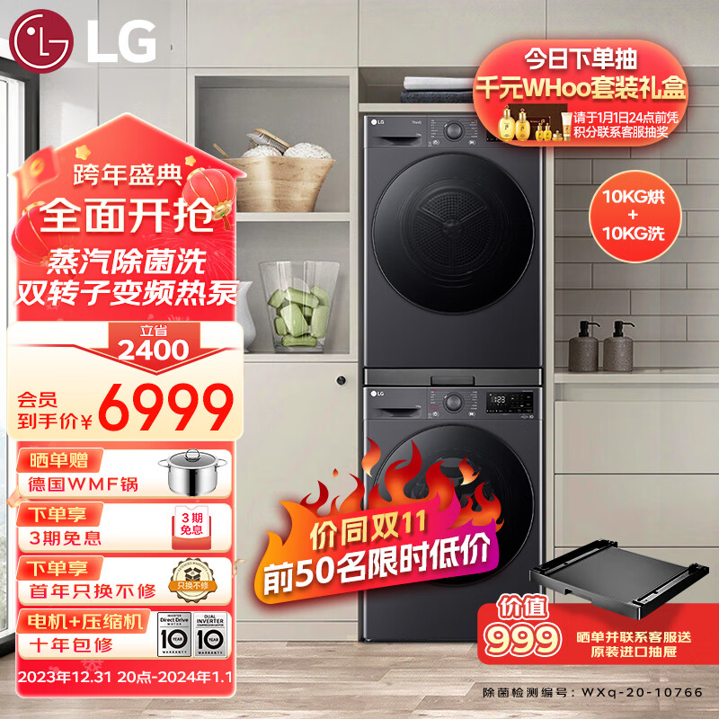 LG星云黑洗烘套装 10kg蒸汽除菌洗衣机+10kg进口双转子变频热泵烘干机家用 FCY10Y4M+RH10V3MVTW价格:8399.00元!