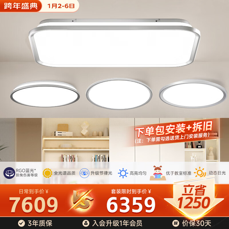 孩视宝【三室一厅】护眼吸顶灯客厅大灯儿童房卧室灯全光谱灯具套餐价格:7609.00元!