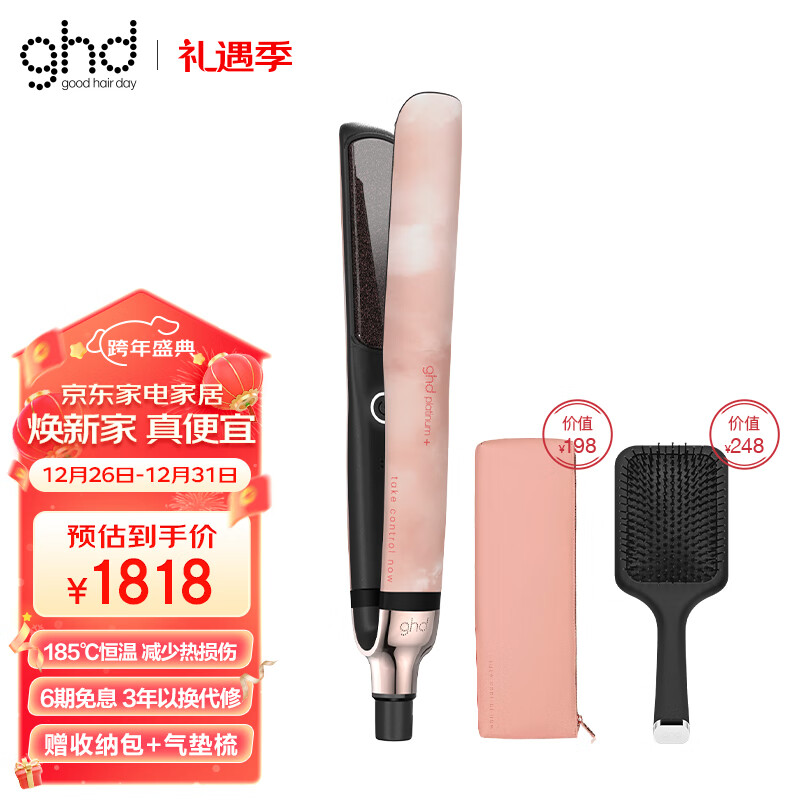 ghd铂金夹板直板夹直卷两用美发防烫185℃恒温减少热损伤直发器卷发棒限定版云雾粉生日礼物送女友价格:2294.00元!