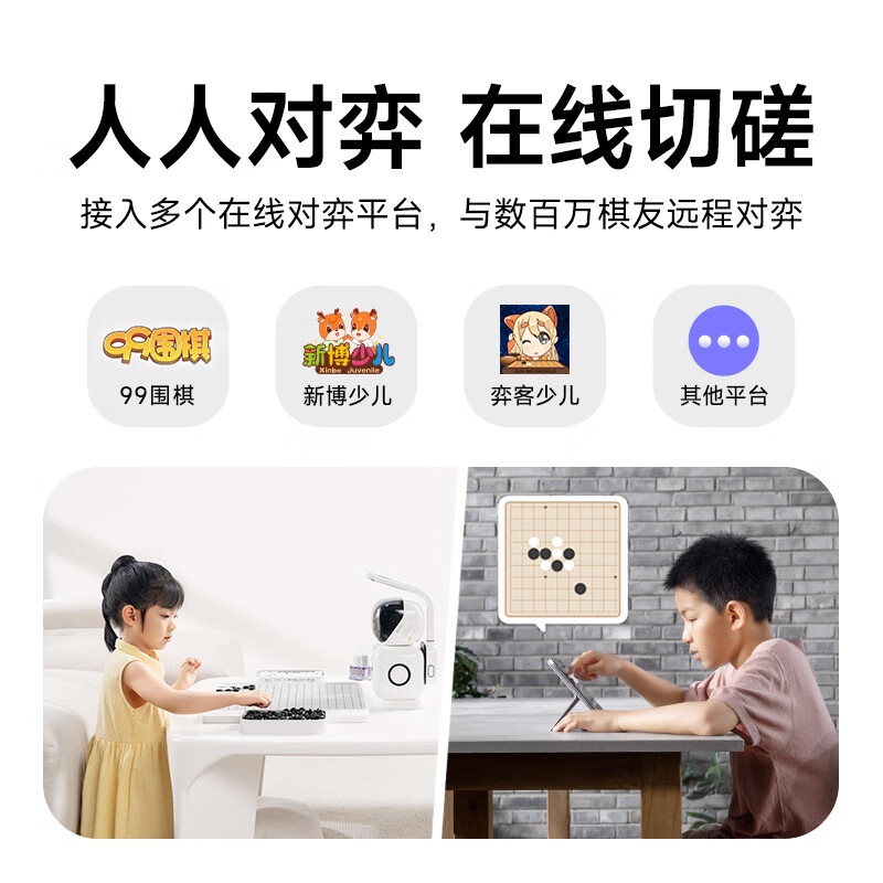 2、非常满意,产品很智能,家里两个宝都学围棋,在围棋班看到这个机器人都很喜欢,买回来半个月对棋艺进步有帮助,可以根据自己的水平任意调节