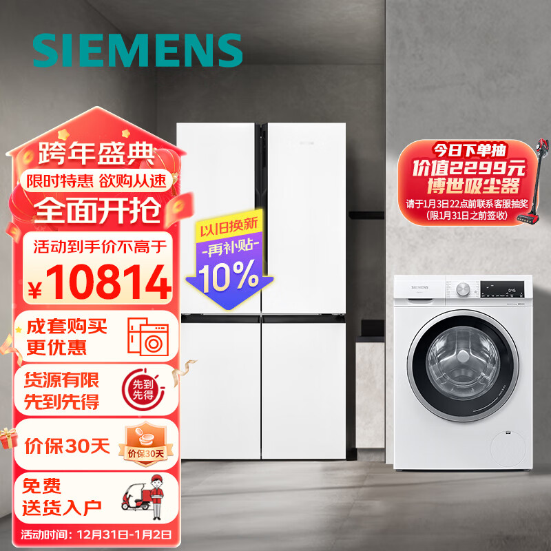 西门子(SIEMENS)冰洗套装 605升超大容量冰箱+10KG专业护衣洗烘一体机 K56L20CMEC+WN52A1004W价格:10814.00元!