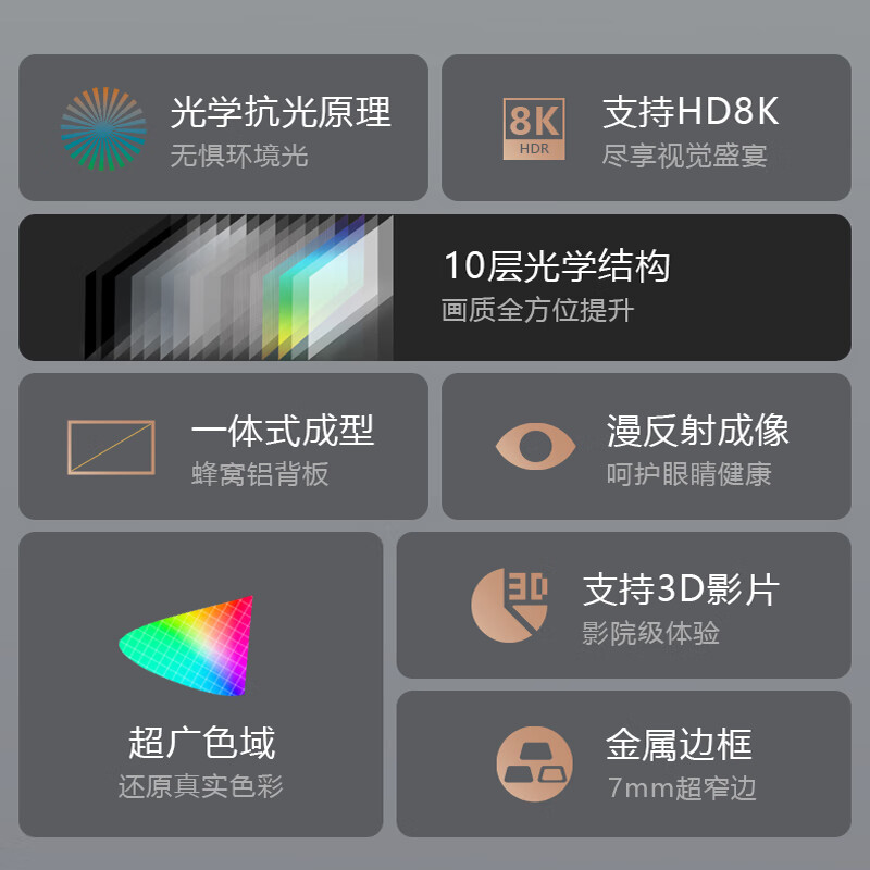 鲸米(JINGMI)90英寸16:9菲涅尔光学抗光硬屏J5激光电视超短焦投影仪专用高清8K家用客厅办公抗光投影屏幕价格:3699.00元!