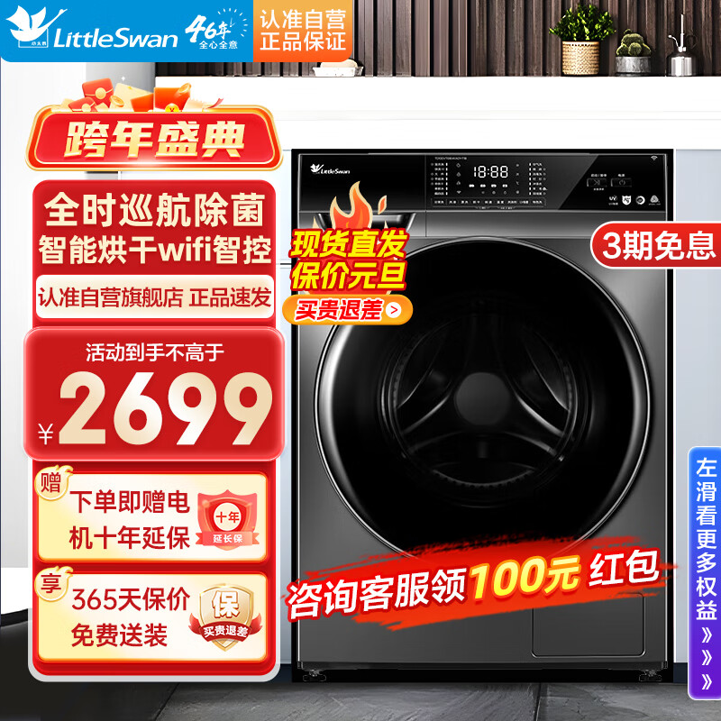 小天鹅(LittleSwan)滚筒洗衣机全自动 洗衣机烘干机一体机 洗烘一体 智能投放双重除菌 10公斤 TD100VT616WIADY-T1B价格:2599.00元!