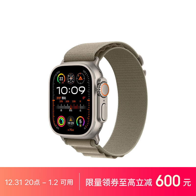 Apple Watch Ultra2 智能手表GPS + 蜂窝款49毫米钛金属表壳橄榄色高山回环式表带大号eSIM健康手表MRFK3CH/A价格:6499.00元!