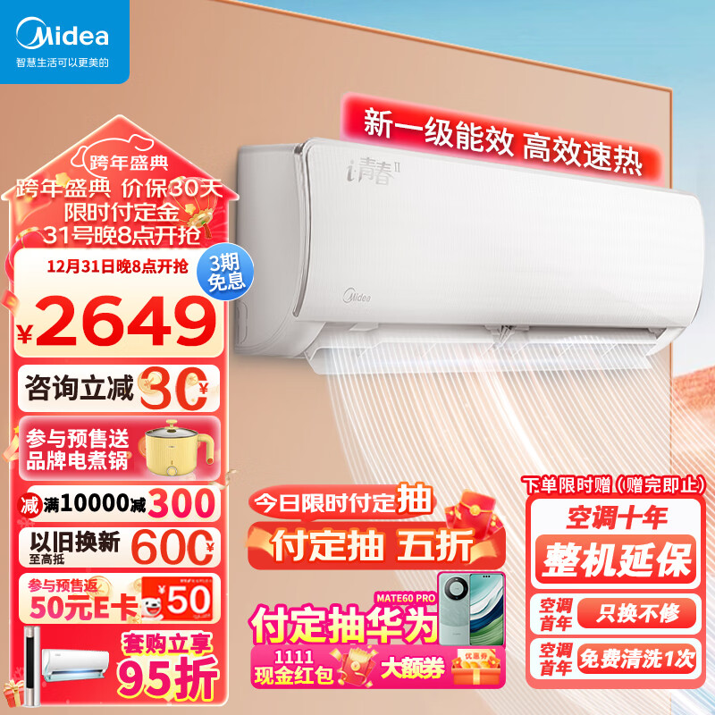 美的(Midea)空调挂机1.5匹 新一级能效变频冷暖卧室家用壁挂空调挂机 智能家电 防直吹自清洁 以旧换新 i青春价格:2648.00元!