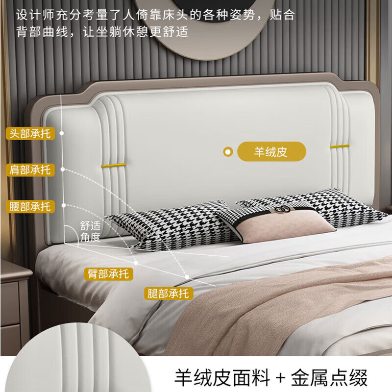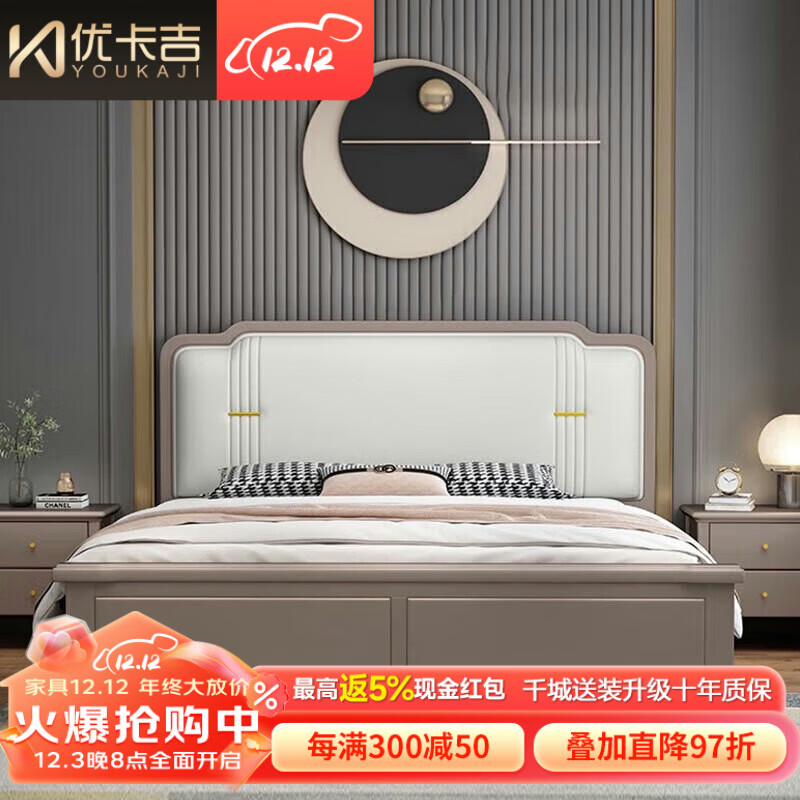优卡吉现代简约实木双人床1.5/1.8米软包床家SQ-1921 框架床+20cm床垫价格:3180.00元!