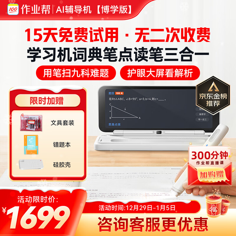 作业帮AI多功能辅导机【博学版】 点读笔学习机词典笔 翻译笔免费视频精讲8.5亿+题库6.8英寸护眼屏16GB价格:1699.00元!