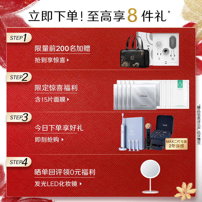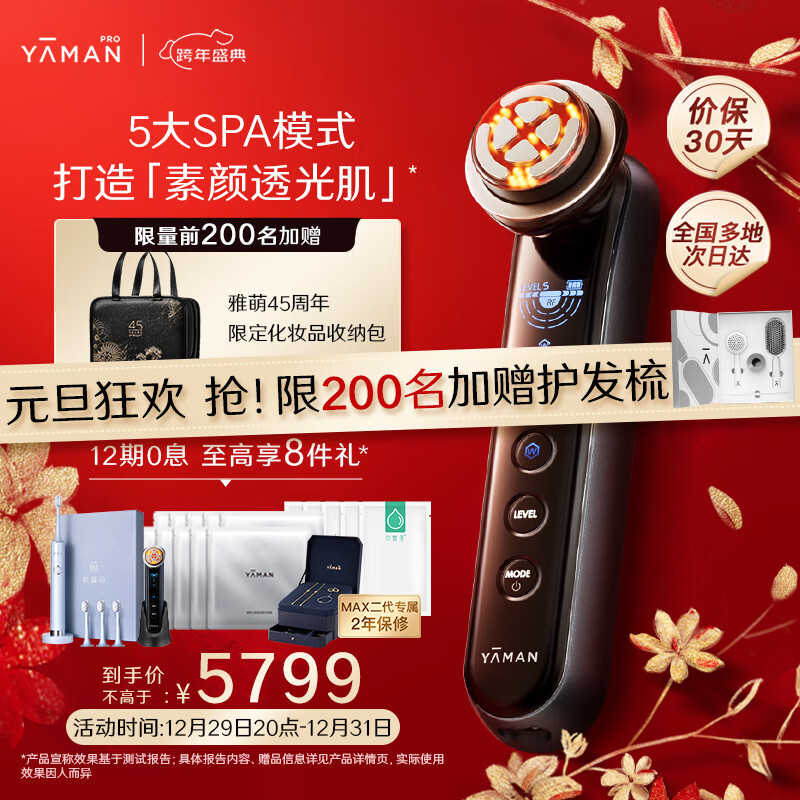 雅萌(YAMAN)MAX二代 旗舰版美容仪 射频仪 脸部按摩眼部淡纹面部v脸紧致 嫩肤提亮 情人节新年礼物 送女生价格:6499.00元!