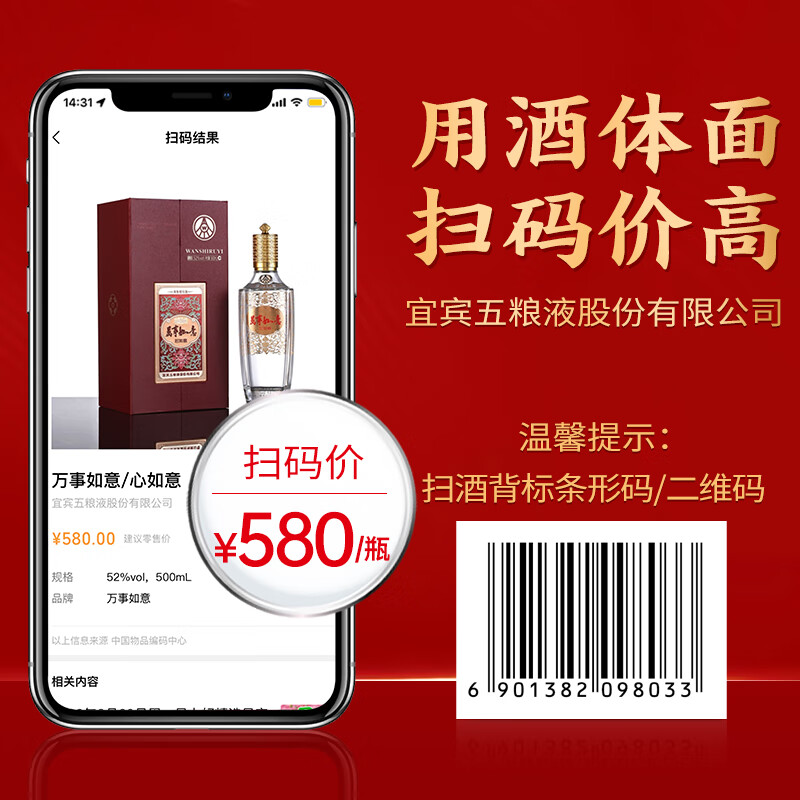 五粮液股份 年货节 万事如意心如意 浓香型纯粮食白酒52度500ml*6瓶装价格:2239.00元!