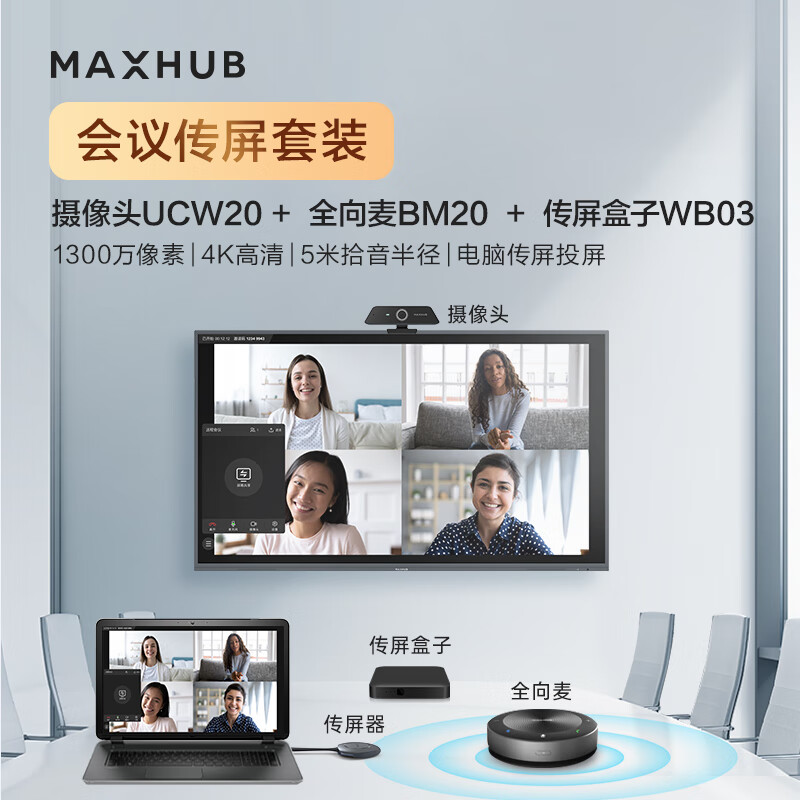 MAXHUB会议解决方案5米拾音半径会议你麦克风BM20+1300万像素4K会议摄像头UC-W20+投屏器WB03价格:3697.00元!