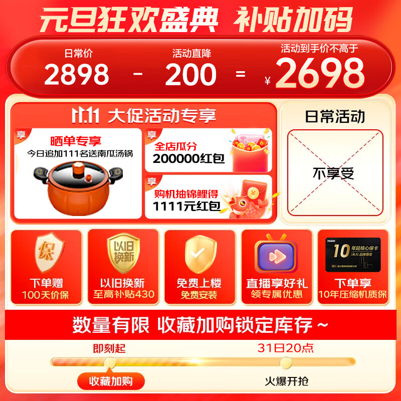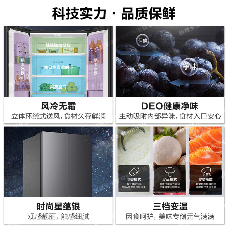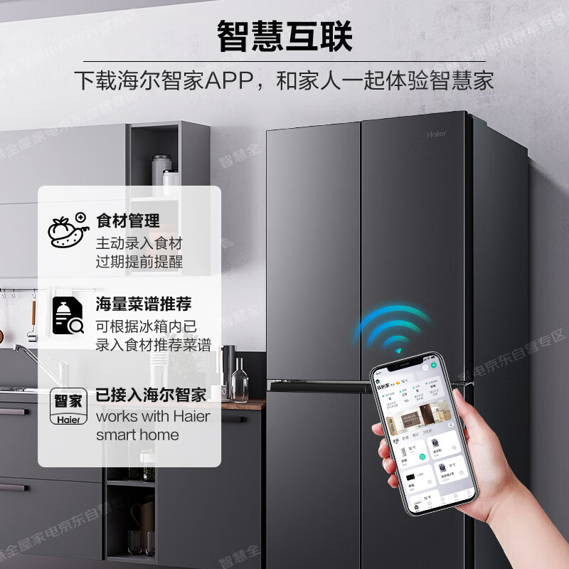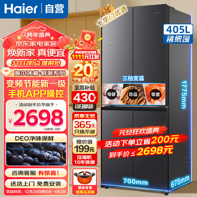 海尔(Haier)冰箱 405升四开门十字对开门多门大容量双变频一级能效风冷无霜家用智能电冰箱价格:2698.00元!