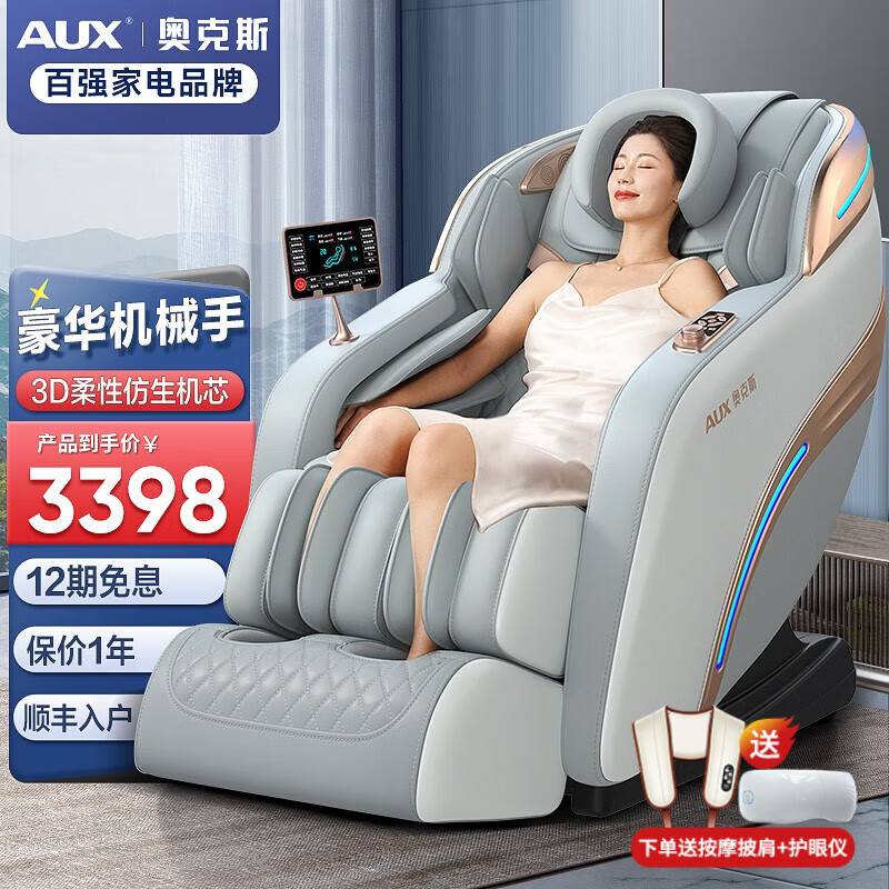 奥克斯(AUX) 按摩椅家用全身豪华零重力全自动多功能电动按摩沙发椅子智能太空舱父亲节礼物 【豪华SL导轨机械手】全配尊享+升级双芯/雅致白灰价格:4898.00元!
