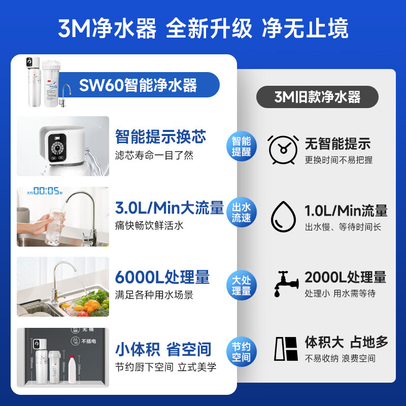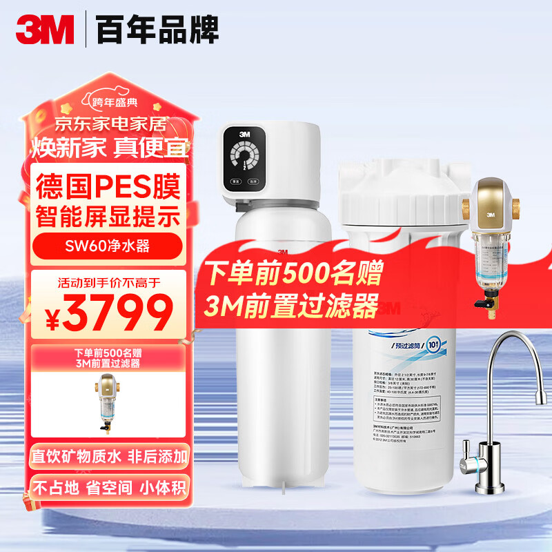 3M净水器家用净水机矿物质0废水直饮智能过滤器3L/分大流量8000升处理量过滤器SW60价格:4229.00元!