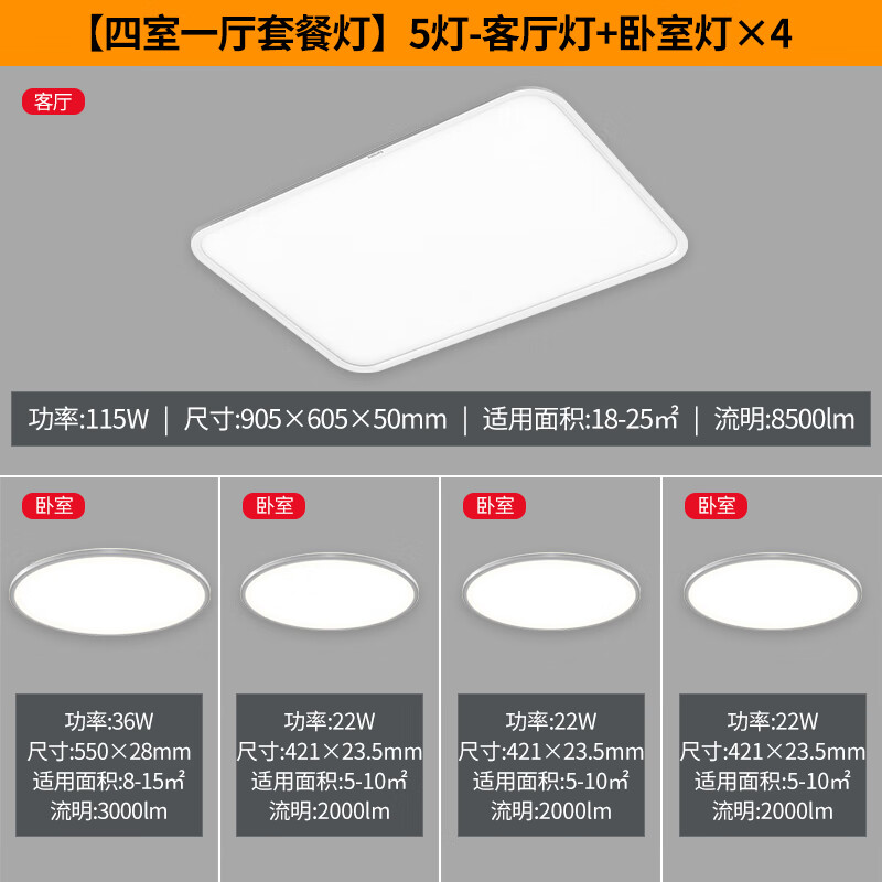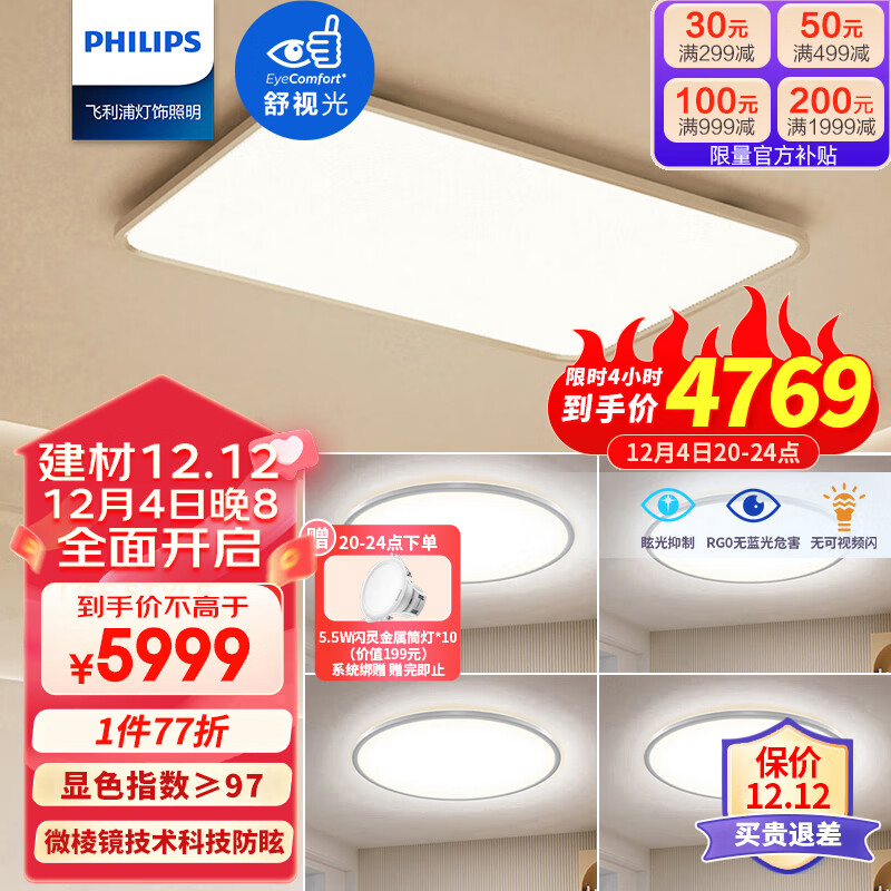 飞利浦(PHILIPS)全光谱护眼吸顶灯 超薄客厅灯现代简约 EyeCare 四室一厅套餐价格:7999.00元!