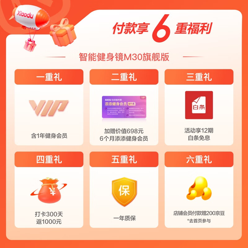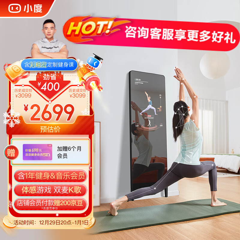 小度添添智能健身镜 M30 旗舰版 家庭健身镜私教 运动镜 魔镜 沉浸式居家健身镜 含1年会员价格:2699.00元!