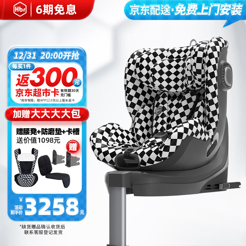 虎贝尔(HBR)E360婴儿童座椅汽车用0-4-12岁宝宝车载i-Size认证黑白棋盘格价格:3488.00元!