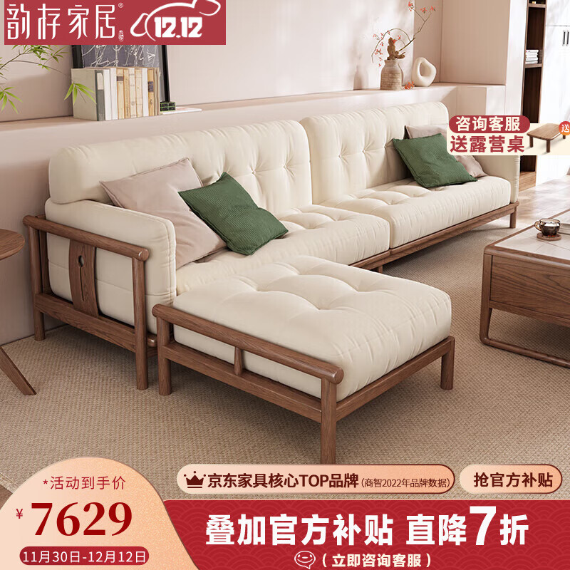 韵存家居 北欧简约实木沙发组合小户型客厅直排四人位云朵布艺沙发615价格:10899.00元!