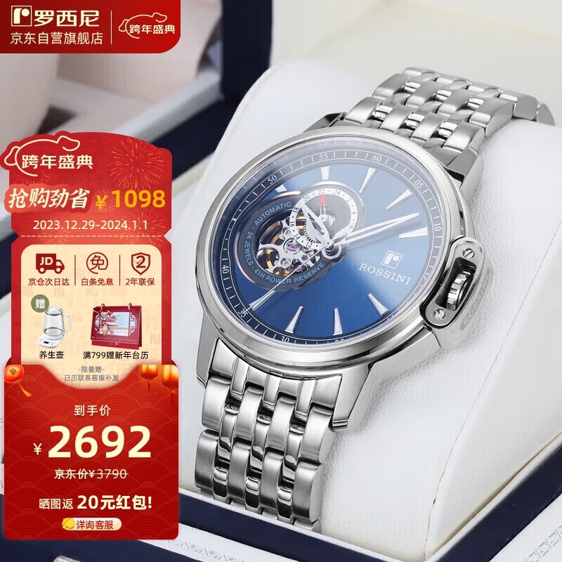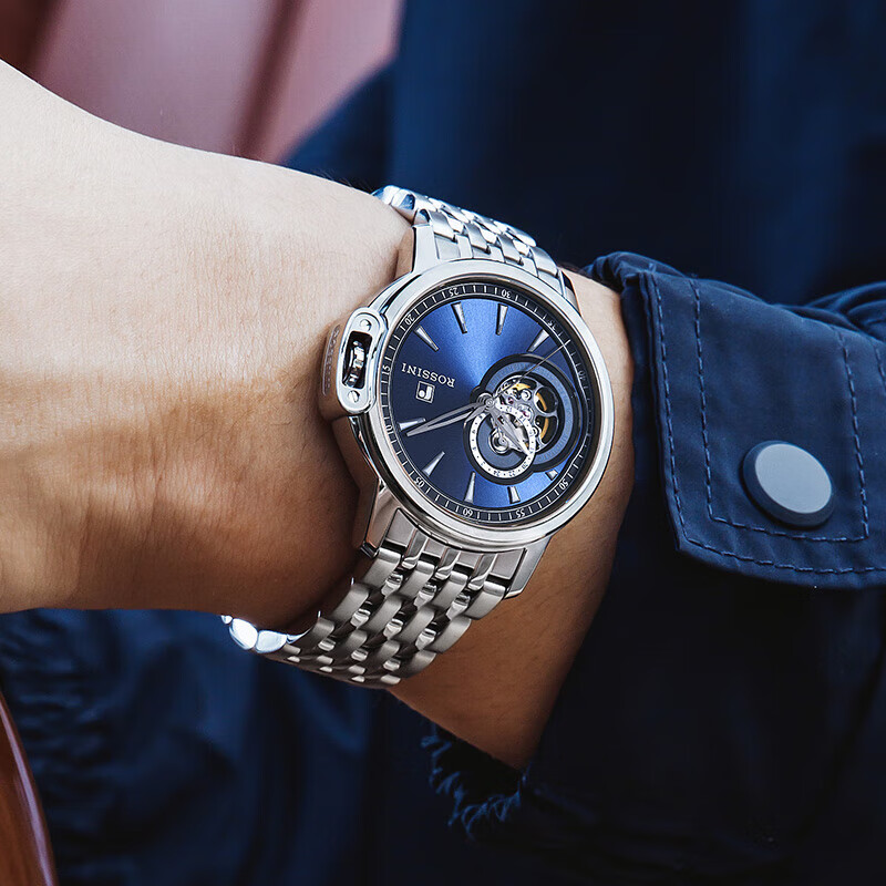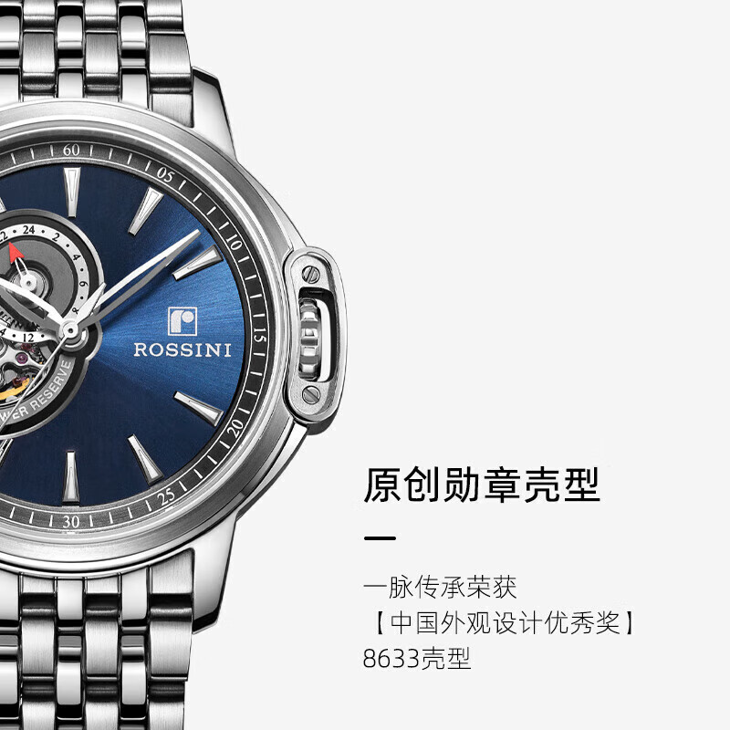 罗西尼(ROSSINI)男士手表机械表勋章蓝盘钢带礼物送男友国表商务镂空商务 8633价格:3092.00元!