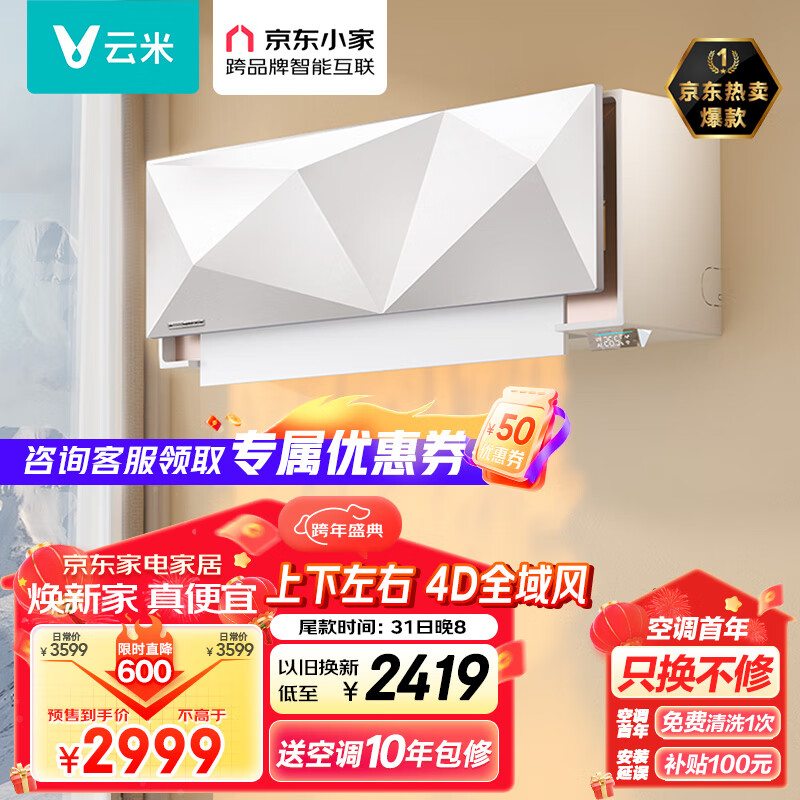 云米(VIOMI)1.5匹智能家电 变频冷暖Space E 4D智能AI全域风 以旧换新 壁挂式挂机空调KFRd-35GW/Y2QX2-A1价格:2998.00元!