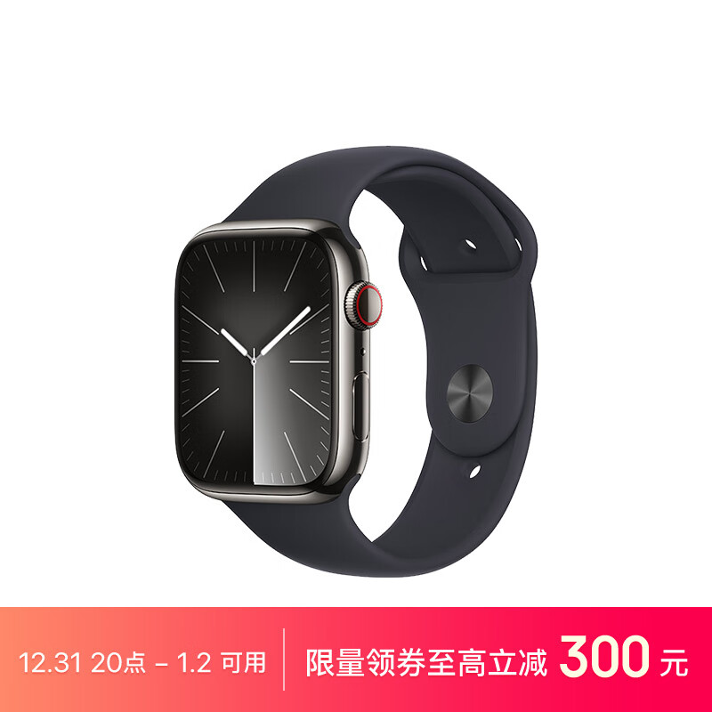 Apple Watch Series 9 智能手表GPS+蜂窝款45毫米石墨色不锈钢表壳午夜色运动型表带M/L电话手表S9 MRPP3CH/A价格:6199.00元!