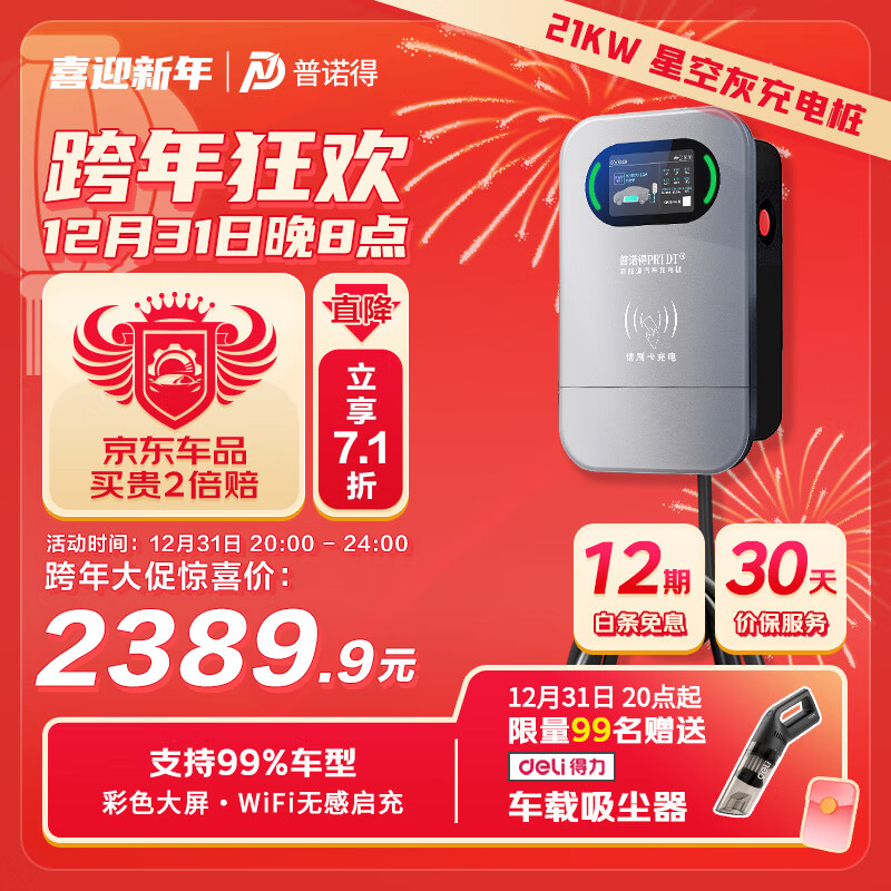 普诺得 星空灰 新能源电动汽车家用充电桩彩屏款 380V21KW 适配于特斯拉3Y比亚迪问界专用三相充电器价格:3360.00元!