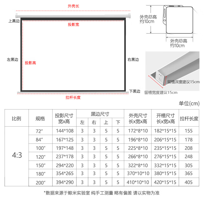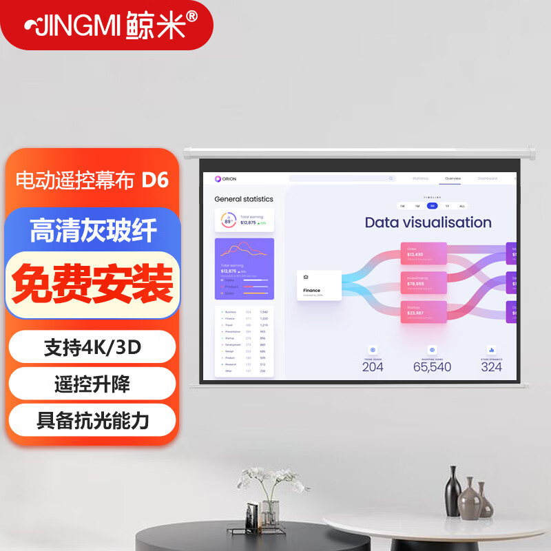 鲸米(JINGMI)投影幕布180英寸4:3电动遥控幕布D6高清4K灰玻纤抗光家用办公电动升降投影机幕布价格:3399.00元!