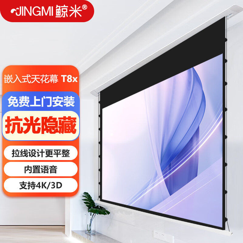 鲸米(JINGMI)隐藏嵌入式天花幕布150英寸16:9金属抗光T8X投影幕布电动拉线遥控语音家用影院投影仪屏幕价格:4199.00元!