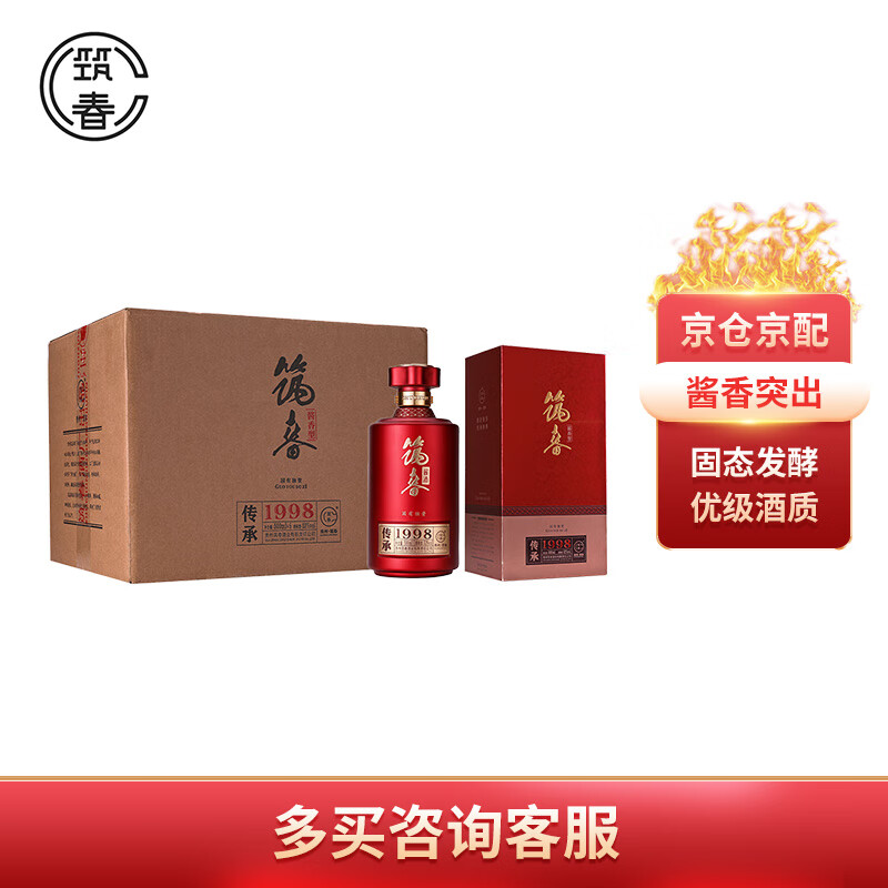 筑春 传承1998 酱香型白酒 53度 500ml*6瓶 整箱装 年货 送礼价格:2839.00元!