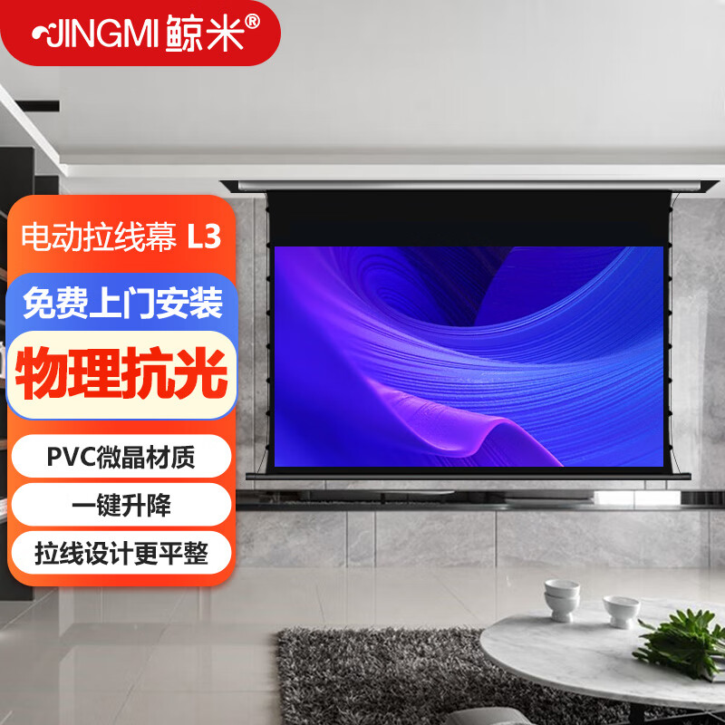 鲸米(JINGMI)电动拉线幕布150英寸16:9纳米4K高清光学抗光黑晶软幕L3家用影院办公影院级遥控投影仪幕布价格:3599.00元!