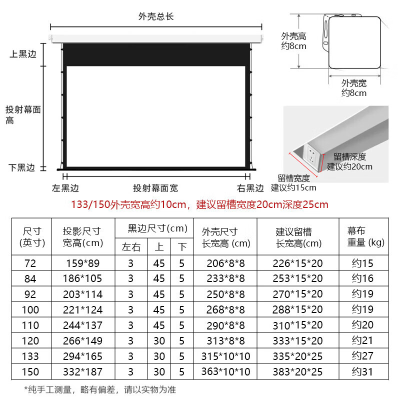 鲸米银河系电动遥控拉线幕黑晶抗光150英寸16:9配置参数: