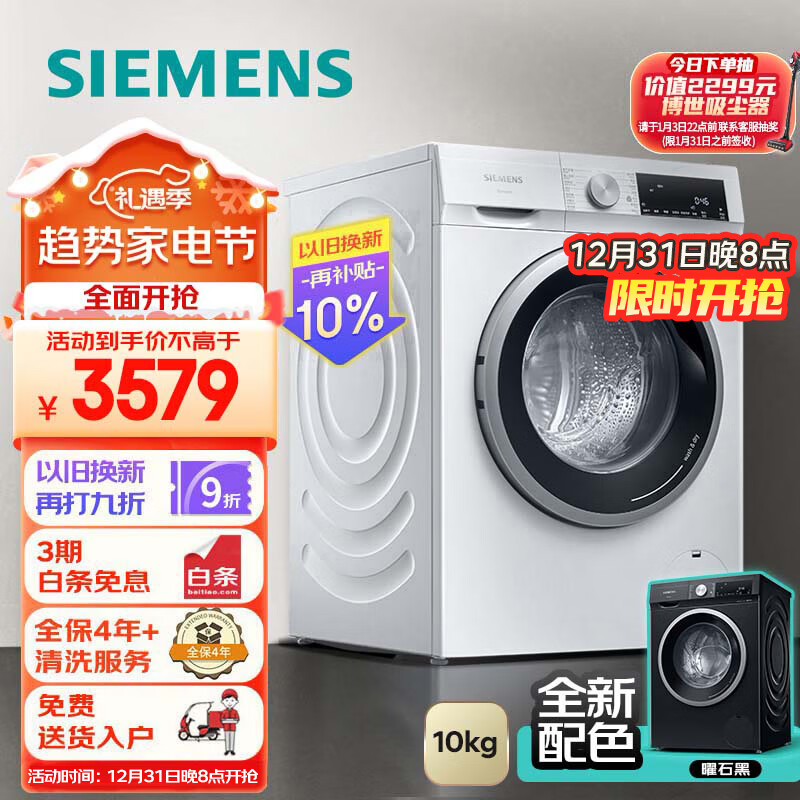 西门子(SIEMENS)iQ300 10公斤滚筒全自动洗衣机烘干机一体机 蒸气除菌 祛味除螨 羊毛洗 深层自洁 立体烘干 1004W价格:4699.00元!