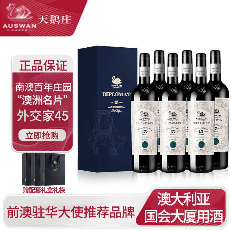 天鹅庄(AUSWAN)澳大利亚原瓶进口红酒 外交家西拉干红葡萄酒6支礼盒价格:3798.00元!